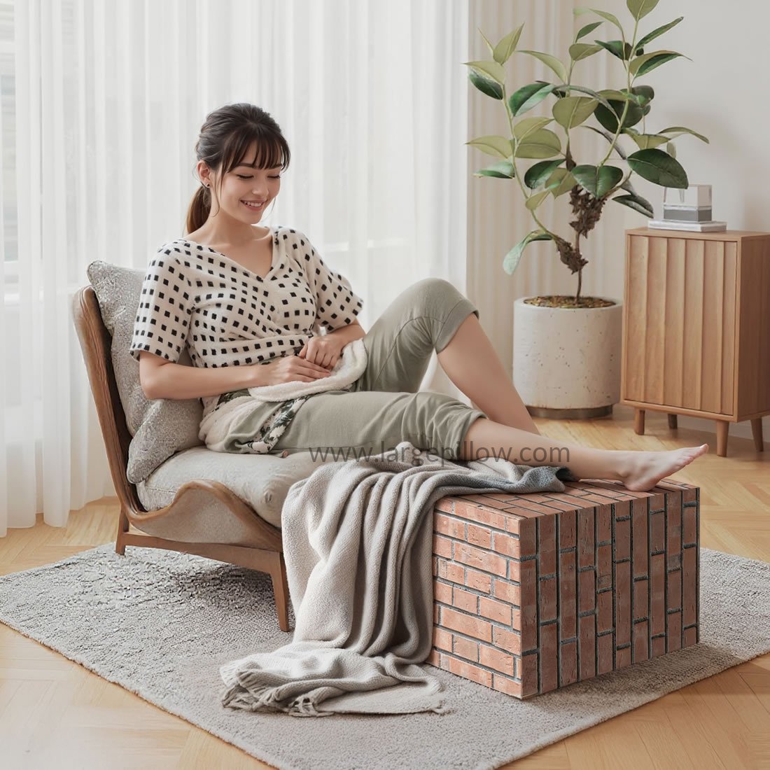 Koristeellinen moderni ottomaani-kuutiomainen jalkarahi kodin sisustuselementteihin (punainen tiili)
