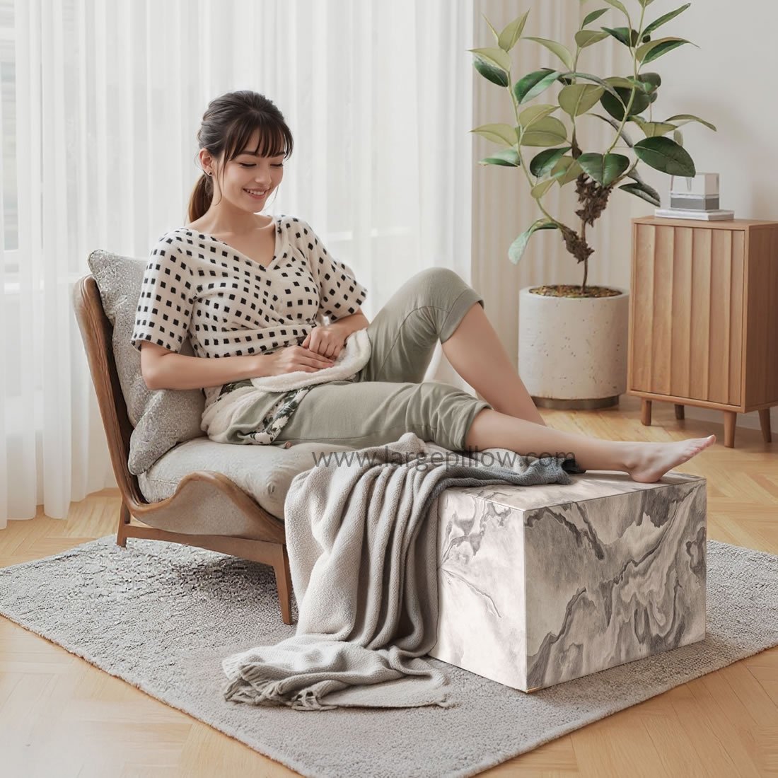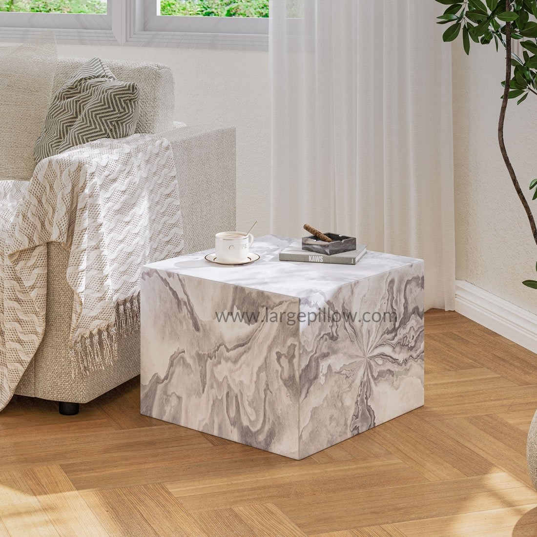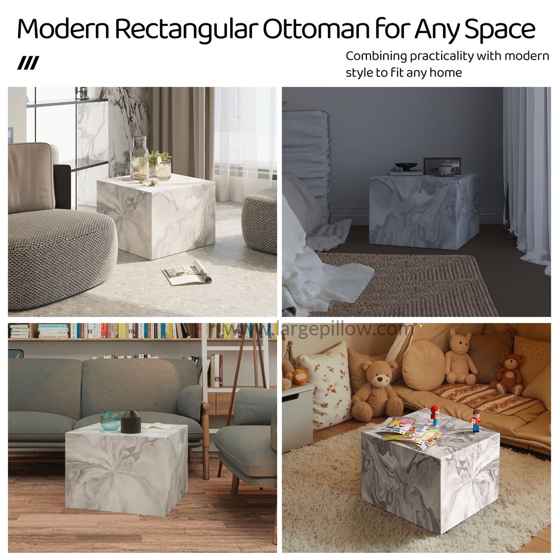 Nykyaikainen ottomaanikuutio koristeellinen jalkatuki kotiin (valkoinen marmori)