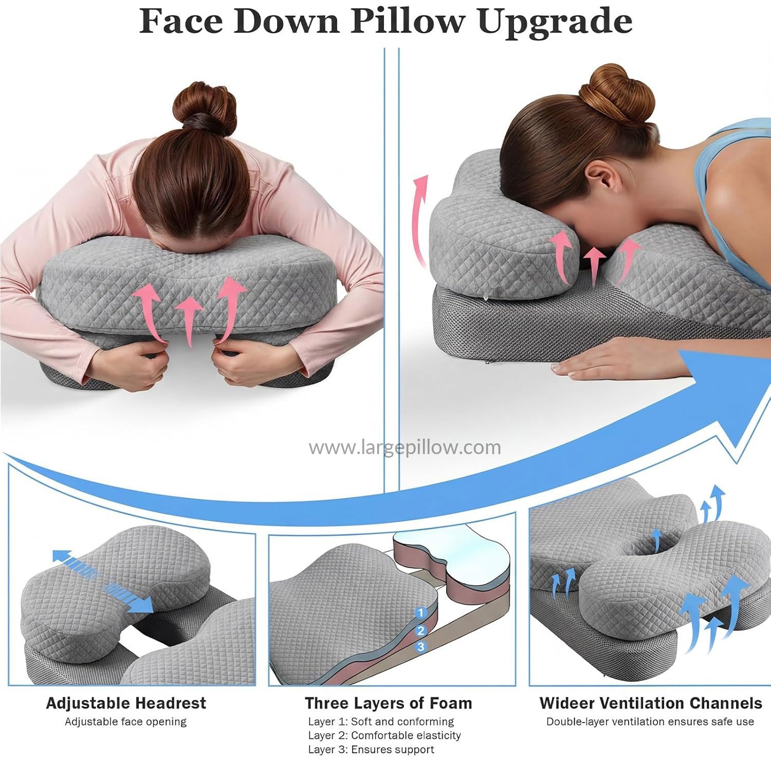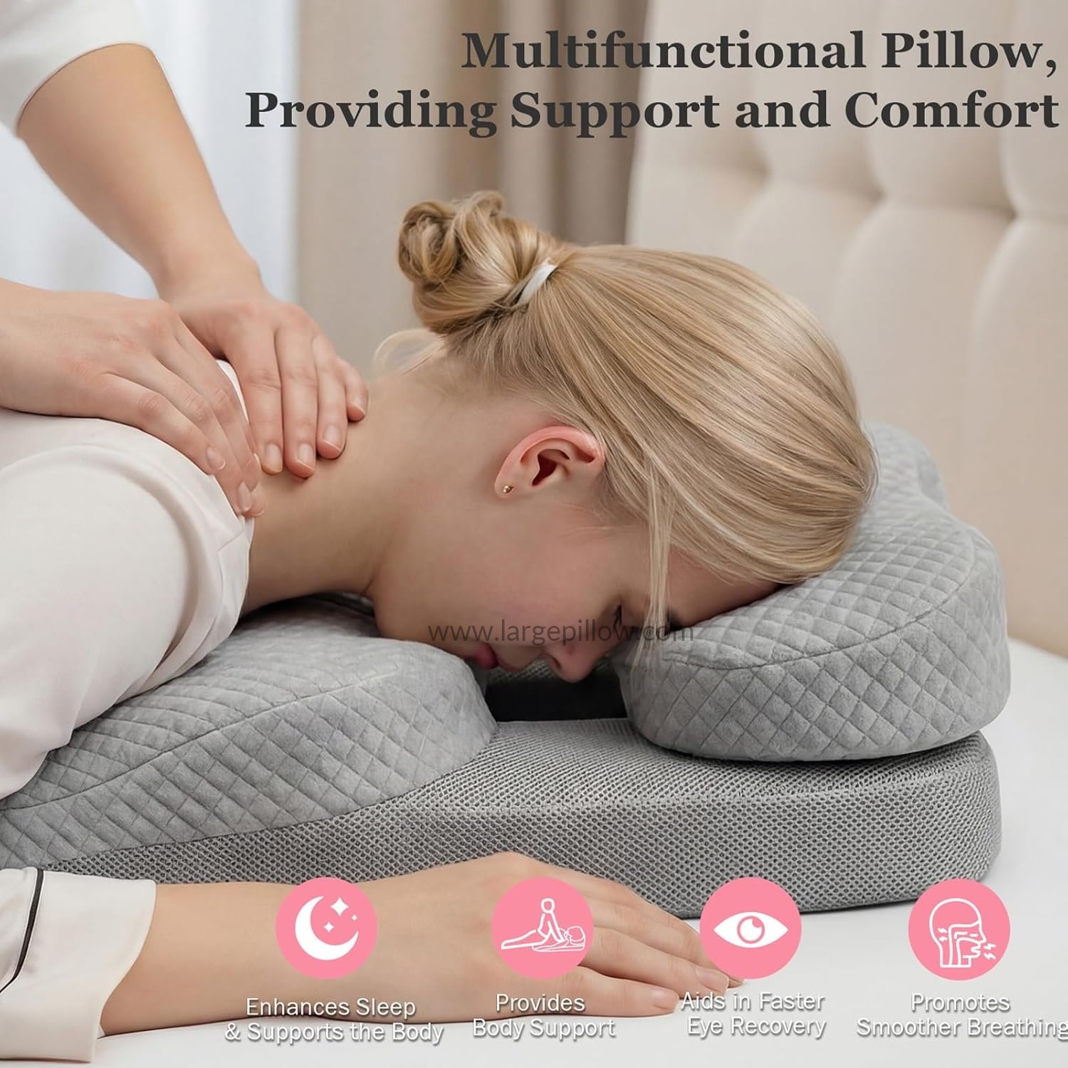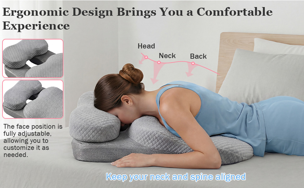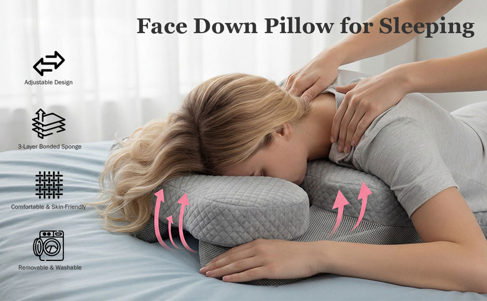 Massage pillow face down It helps with recovery after various surgeries and can also be used as a home massage pillow,chiropractic massage, desk naps,or prone sleeping at night.