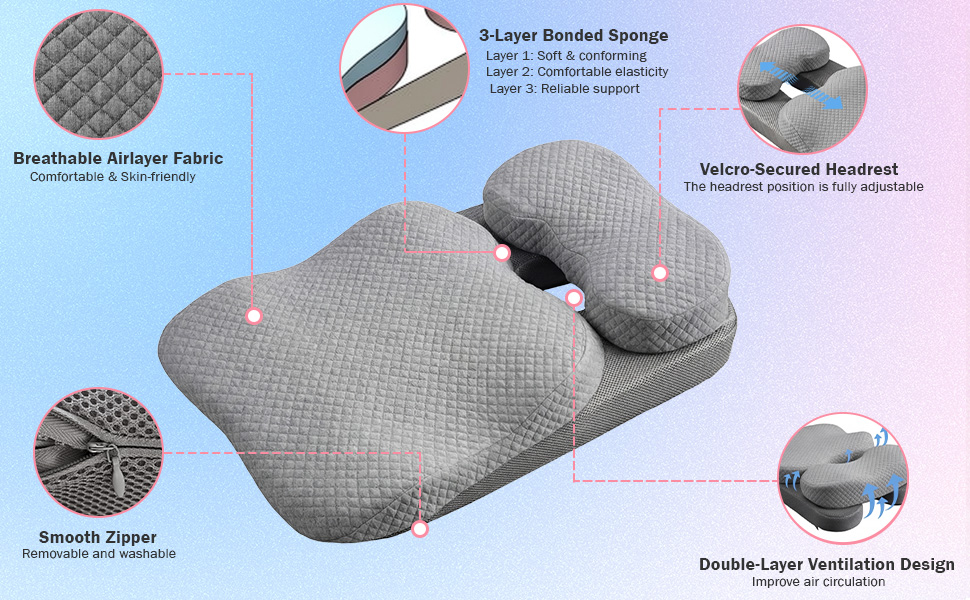 Three layers of foam: Layer 1: soft and conforms to the body; Layer 2: comfortable and elastic;Layer 3: provides support. Double-layer breathable design.