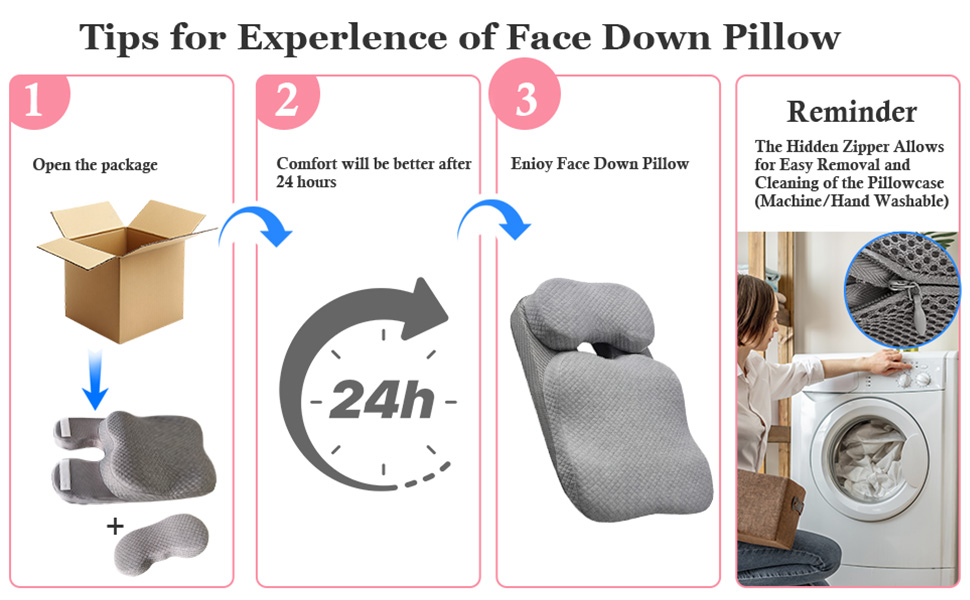 Tips: Unfold and pat the pillow after taking it out, it will become more fluffy after 24 hours. The zipper pillowcase is removable and the pillowcase can be machine washed.