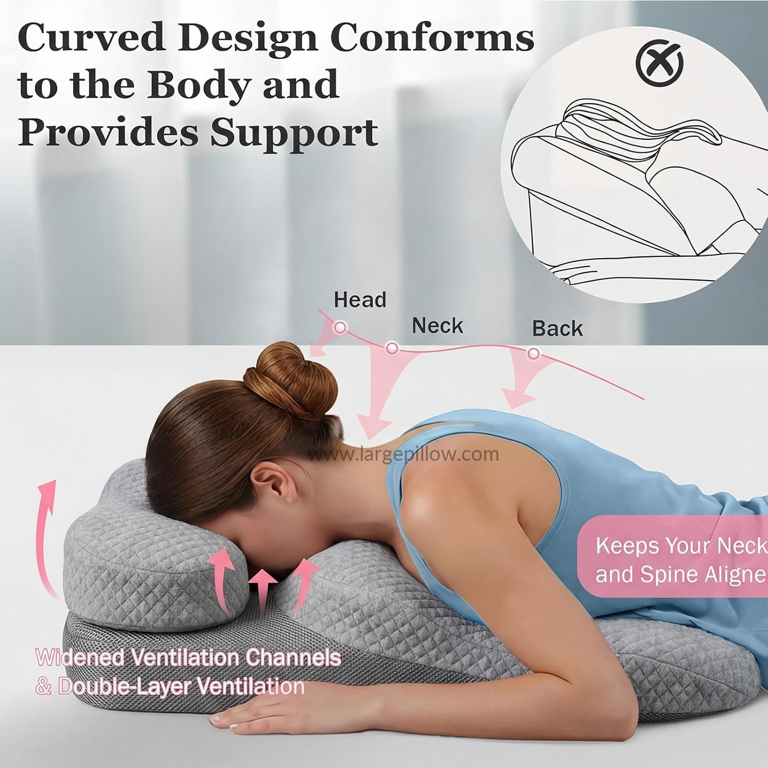 This prone pillow uses skin-friendly and breathable fabric with a three-layer sponge design, providing both support and comfort.the removable pillowcase with an invisible zipper is easy to wash and machine washable.