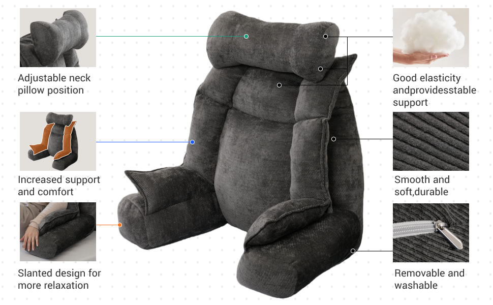 Ez a férjpárna sokféle igényt kielégít - diákoknak, irodai dolgozóknak, olvasóknak -, és alkalmas a pihenésre munka, olvasás, játék vagy alvás közben.