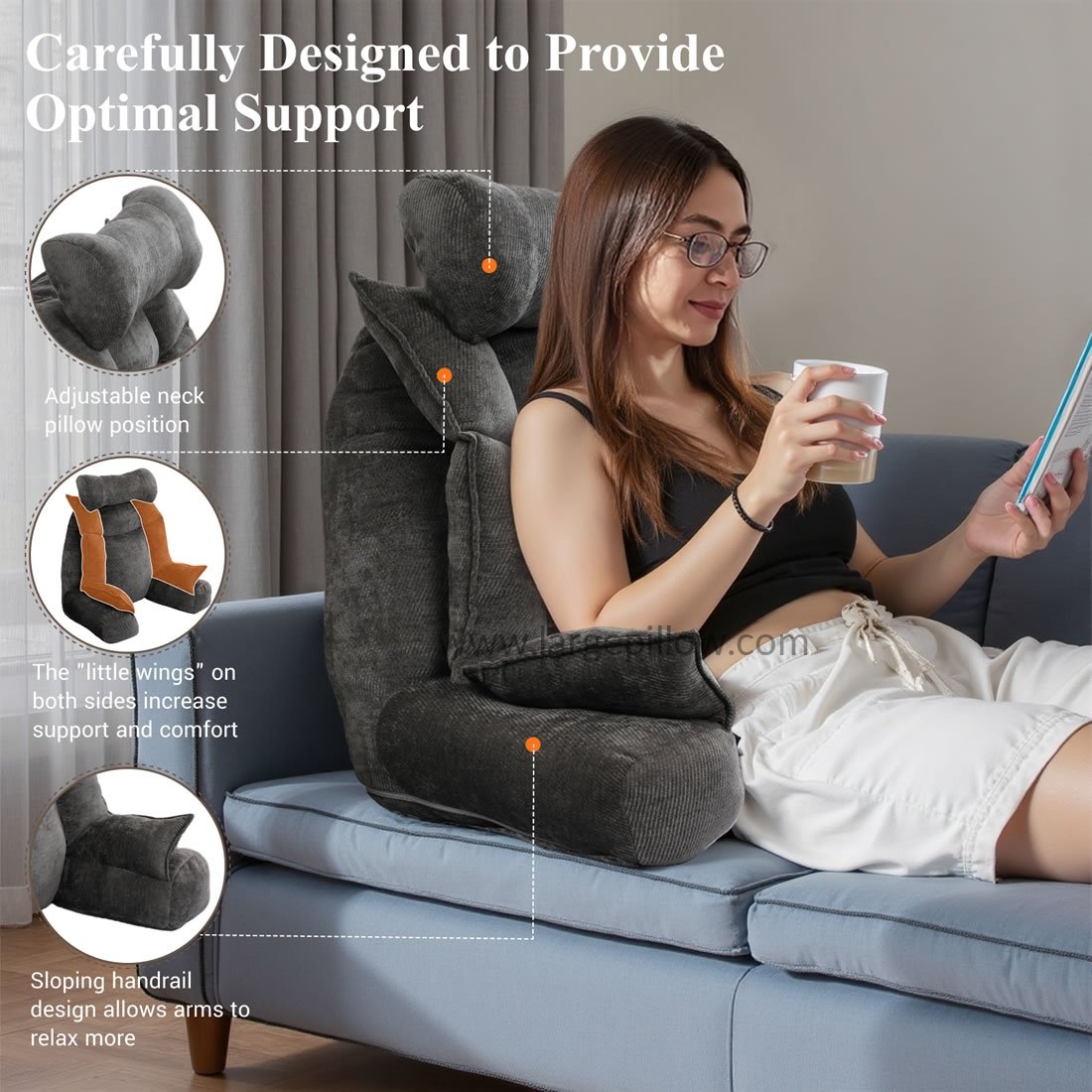 Több mint egy párna, ez egy átfogó tartórendszer, amely lehetővé teszi, hogy bárhol személyre szabott kényelmet élvezhessen. Az átfogó ergonomikus támasz enyhíti a hát terhelését. Az egyedülálló, sokoldalú szerkezet tökéletesen illeszkedik a test vonalaihoz. A magas háttámla szilárd támaszt nyújt az egész hátnak és deréknak, míg a mindkét oldalon enyhén megemelt “pillangószárny” karfák átfogó és hatékony támaszt nyújtanak a karoknak és a könyököknek, így a kezek szabadon maradnak. Akár olvas, laptopozik, filmet néz, vagy egyszerűen csak szunyókál, gerincét a legkényelmesebb és legellazultabb helyzetben tartja.