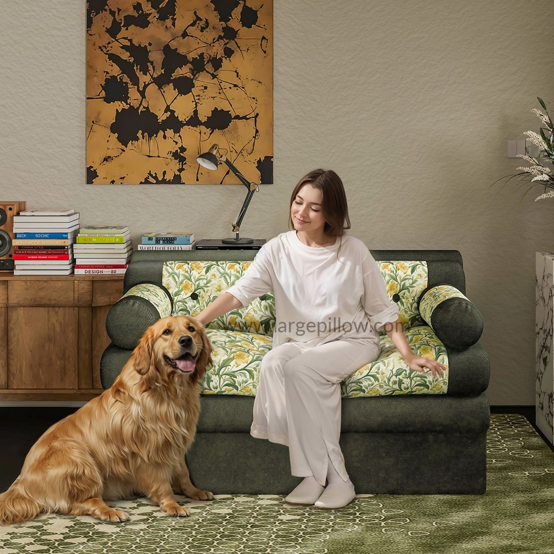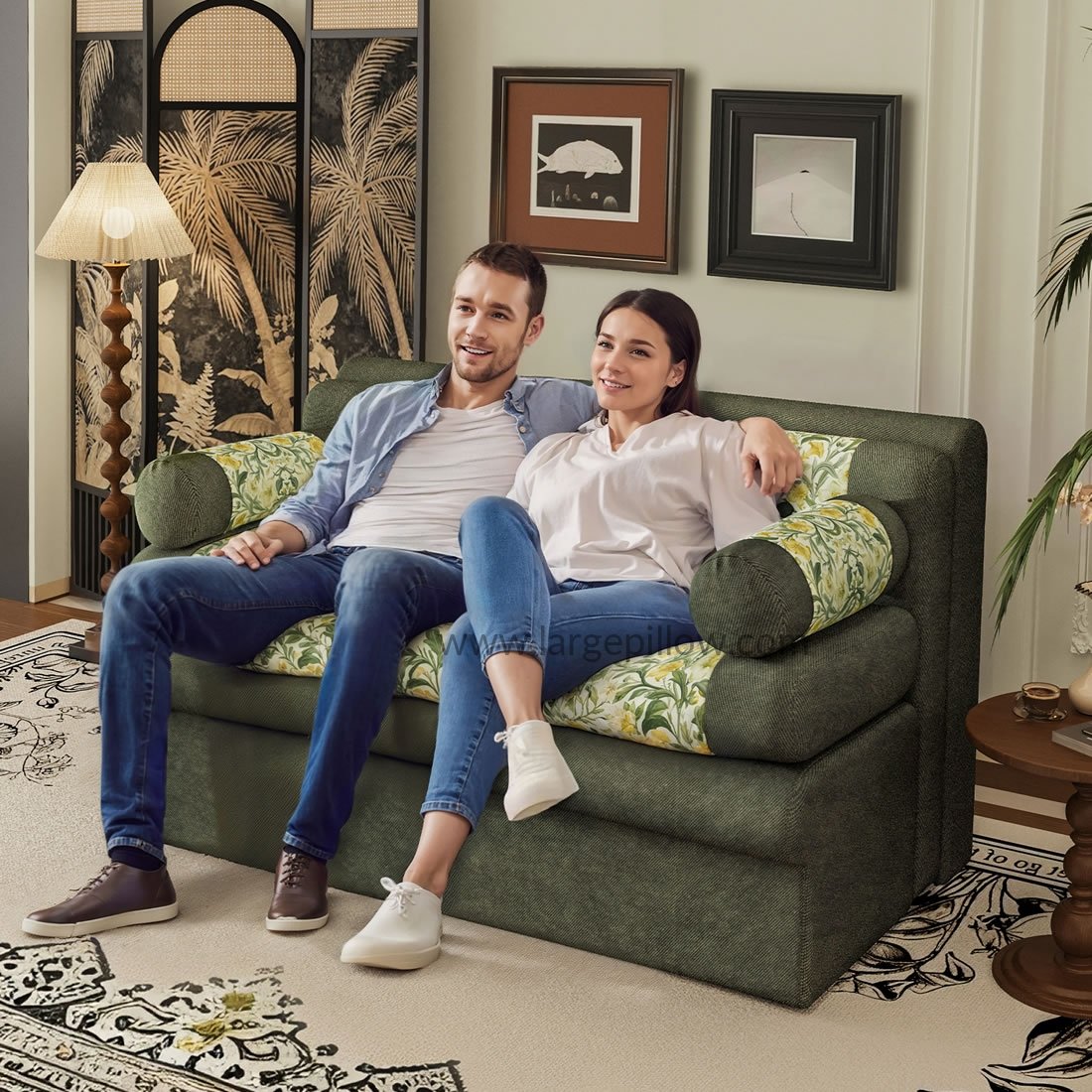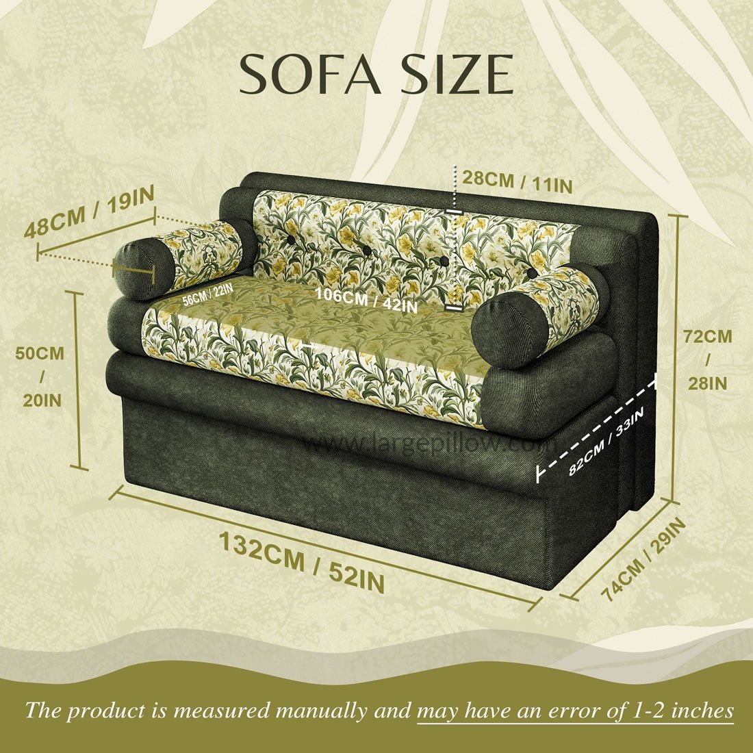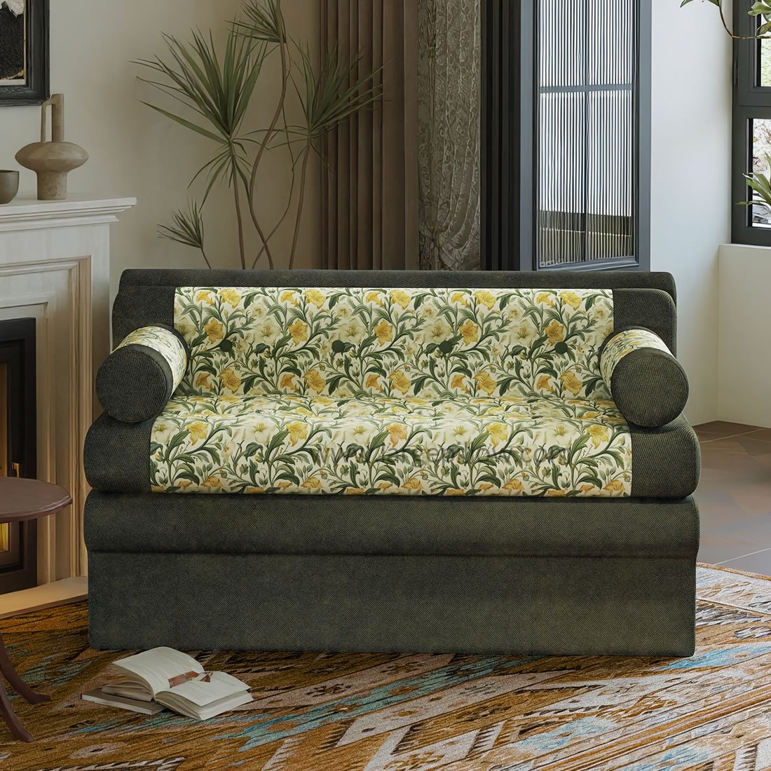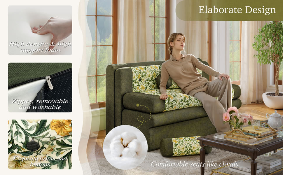 • Elegáns virágminta: A kecses, lágy sárga és zöld árnyalatú botanikai mintával kárpitozott kanapé frissítő és vintage ihletésű bájt kölcsönöz bármely szobának.