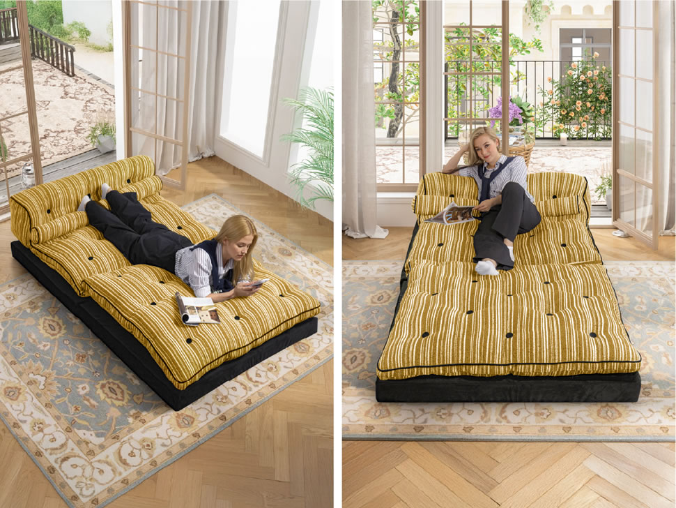 Pagerinkite savo gyvenamąją erdvę su sulankstoma sofa-lova – stilingu ir praktišku priedu, sukurtu derinant komfortą, universalumą ir modernią estetiką. Nesvarbu, ar priimate svečius per naktį, ar kuriate jaukų kampelį poilsiui, ši transformuojama sofa lengvai virsta iš paminkštintos sofos į erdvią lovą.