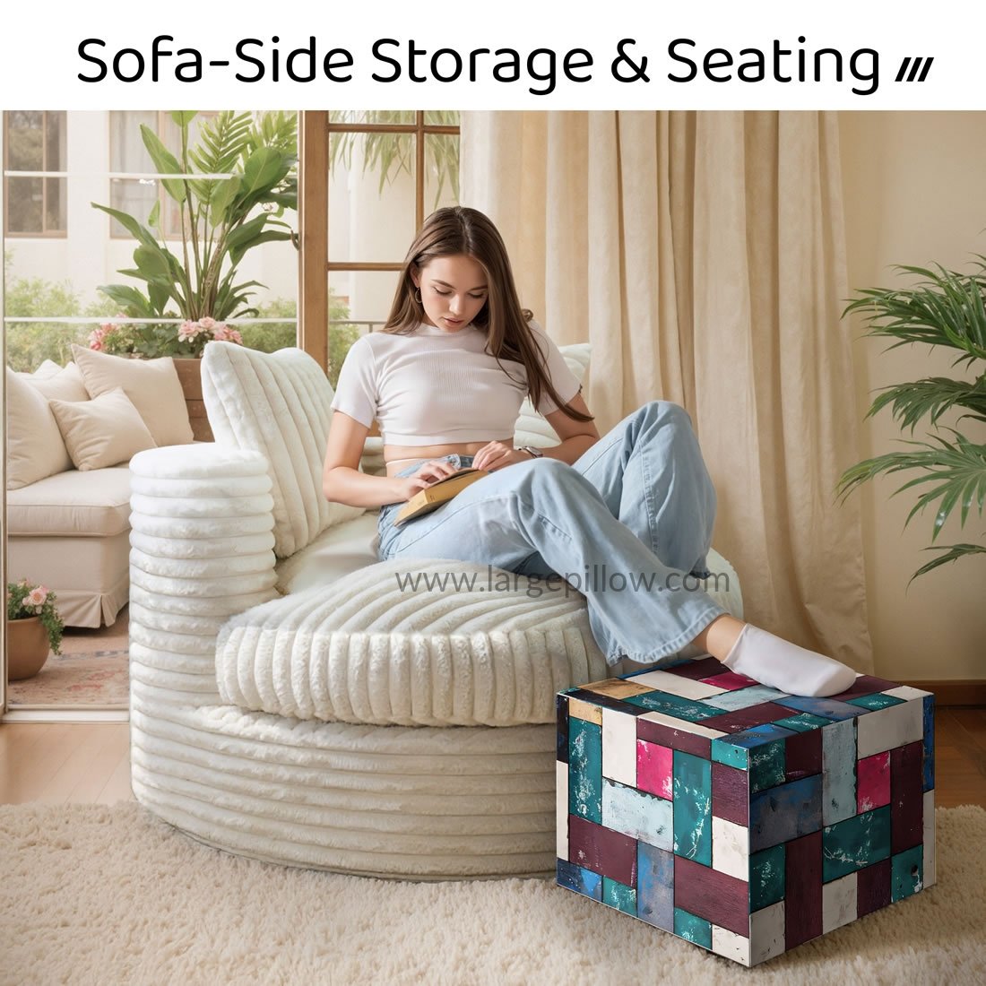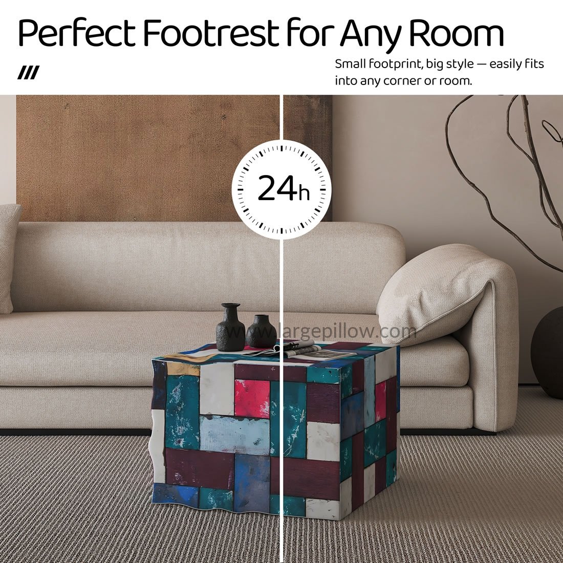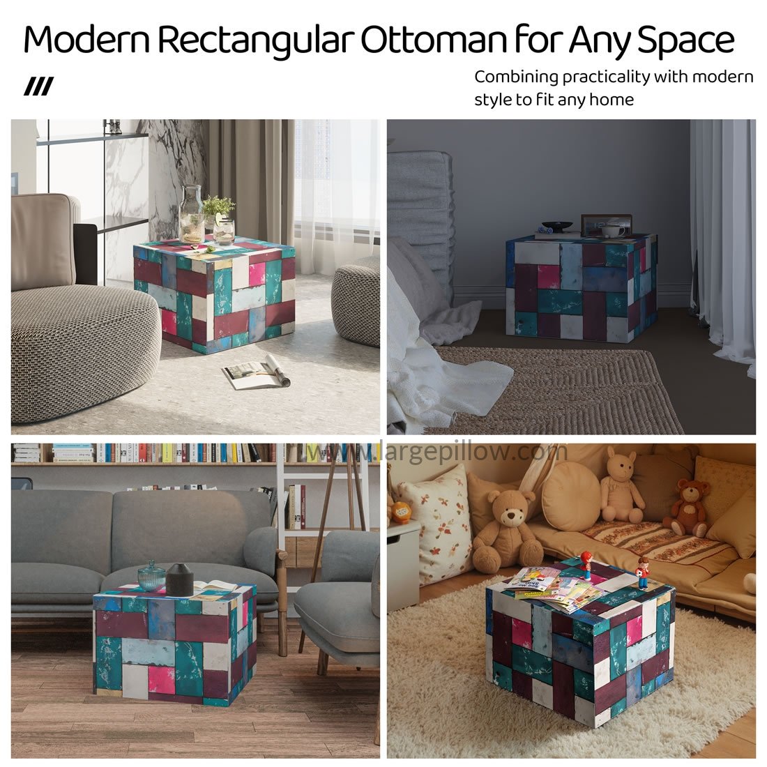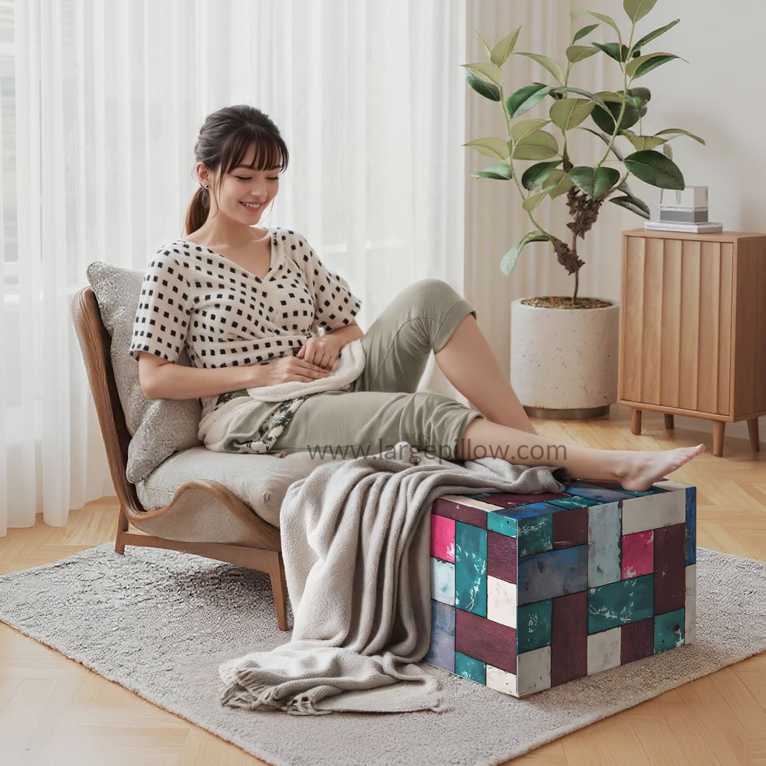 Daudzpusīgs moderns Osmaņu kāju ķeblītis, stilīgs pufs viesistabas dekoram (krāsaini koka bloki)