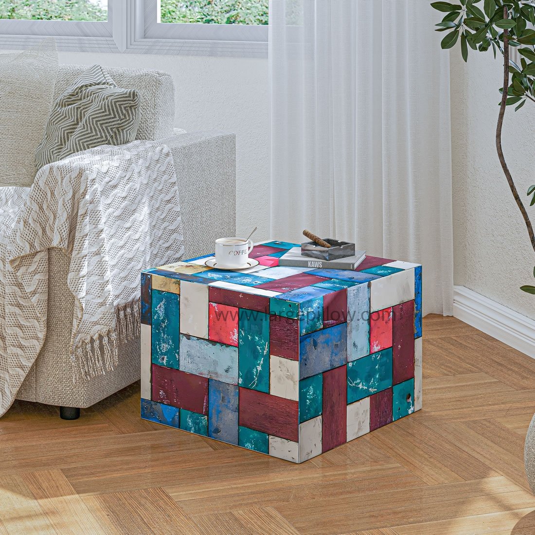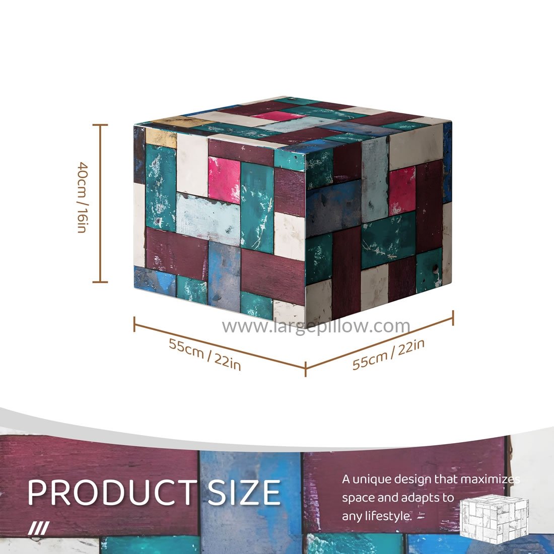 - Daudzpusīgs dizains: moderna kuba formas pufa forma, kas kalpo kā kāju balsts, papildu sēdvieta vai dekoratīvs akcenta elements ar pārsteidzošu koka tekstūras rakstu.