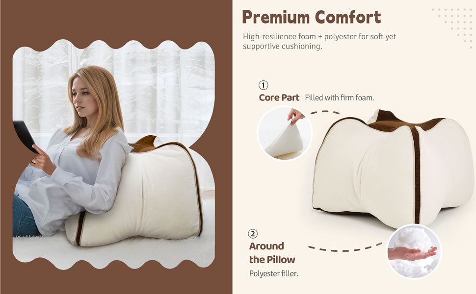 Suport independent: Spre deosebire de pernele obișnuite pentru citit care trebuie să se sprijine de un perete sau de o tăblie de pat, această pernă stă singură. Bucurați-vă de un suport stabil pentru spate pe pat, canapea sau podea - oriunde doriți să vă relaxați.