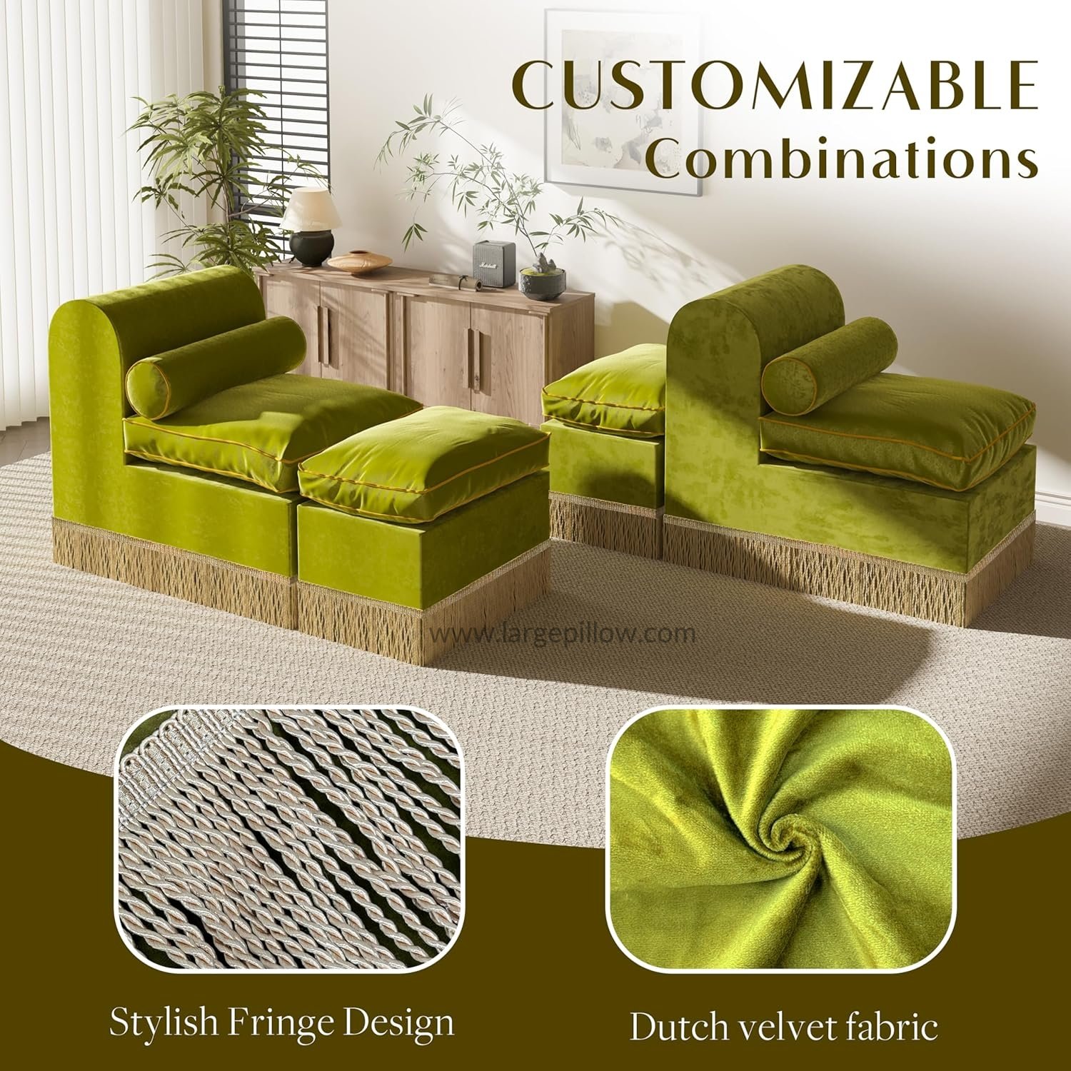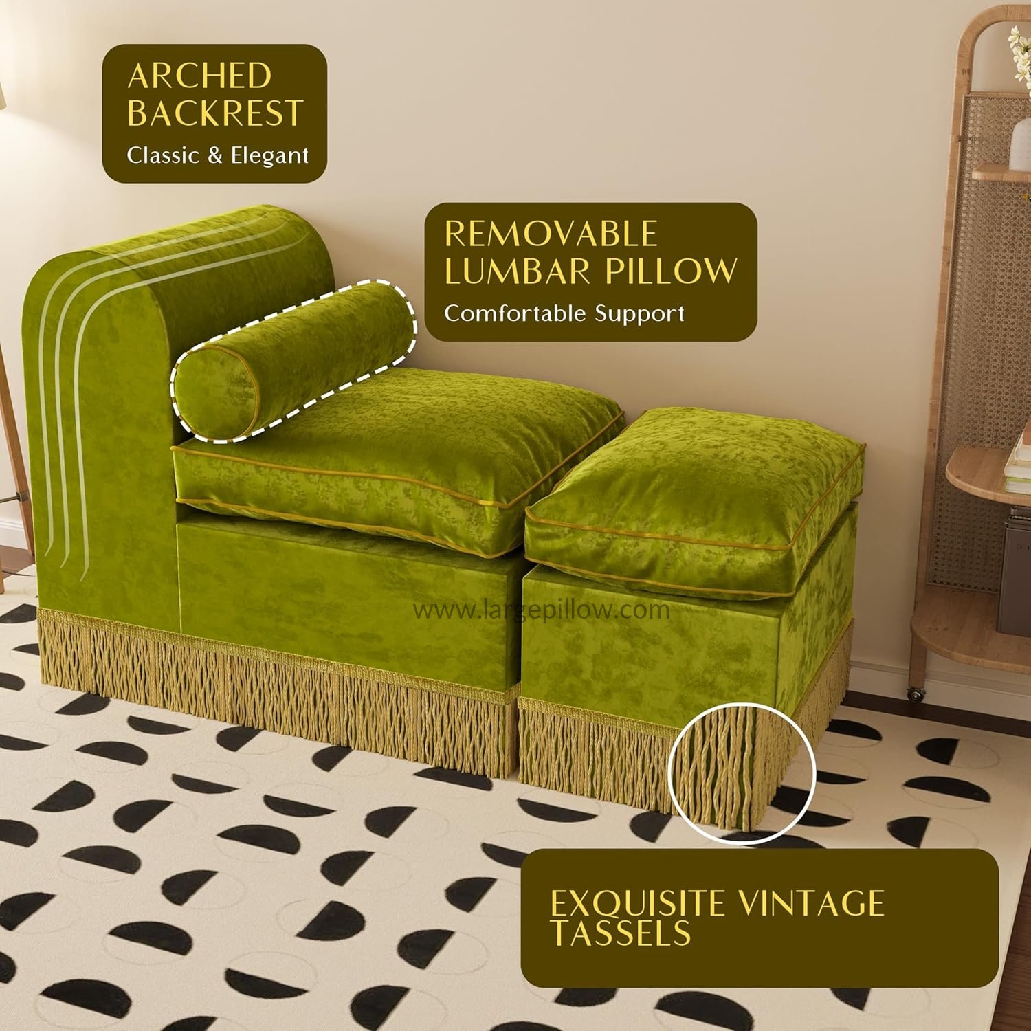 Luxusné pohodlie: Vnútorné ležadlo je čalúnené holandským zamatom, ktorý ponúka luxusnejšiu textúru ako tradičný zamat a je mäkké a príjemné na dotyk. Vankúš je vyplnený vysoko kvalitnou PP bavlnou, ktorá poskytuje dlhotrvajúcu pohodlnú oporu, či už čítate, rozprávate sa alebo jednoducho relaxujete.
